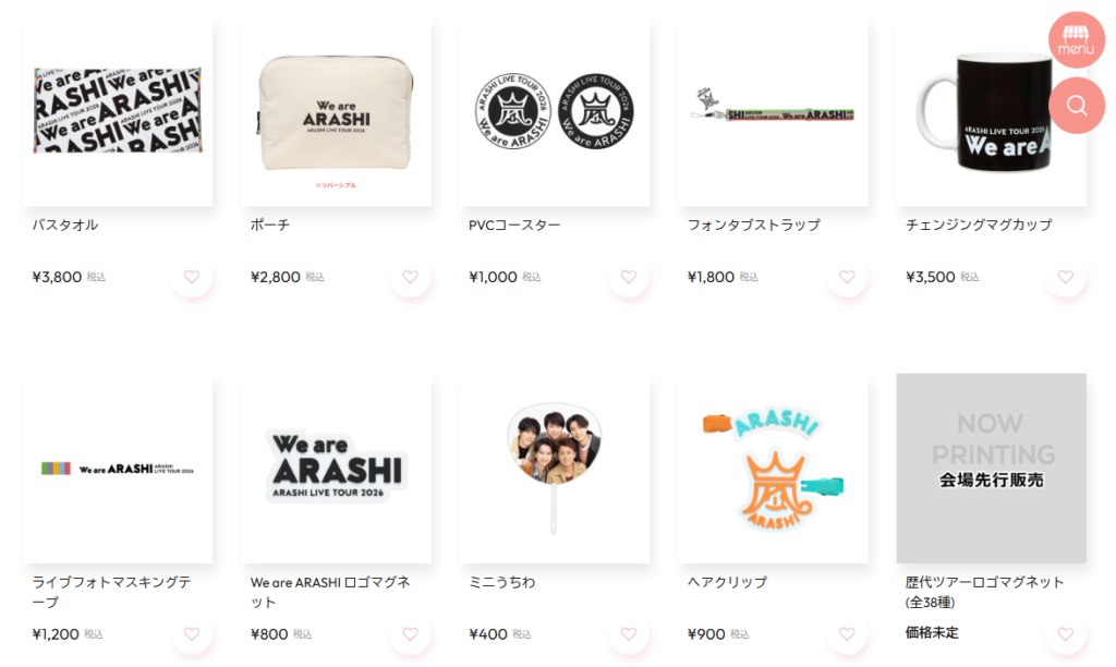 嵐のコンサートツアー「ARASHI LIVE TOUR 2026『We are ARASHI』」の開催に向けて、公式よりツアーグッズの内容が発表されました。