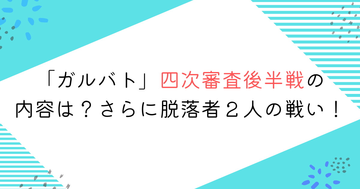 今回は、「ガルバト」四次審査の後半戦の候補生たちの様子や、内容などを紹介します。