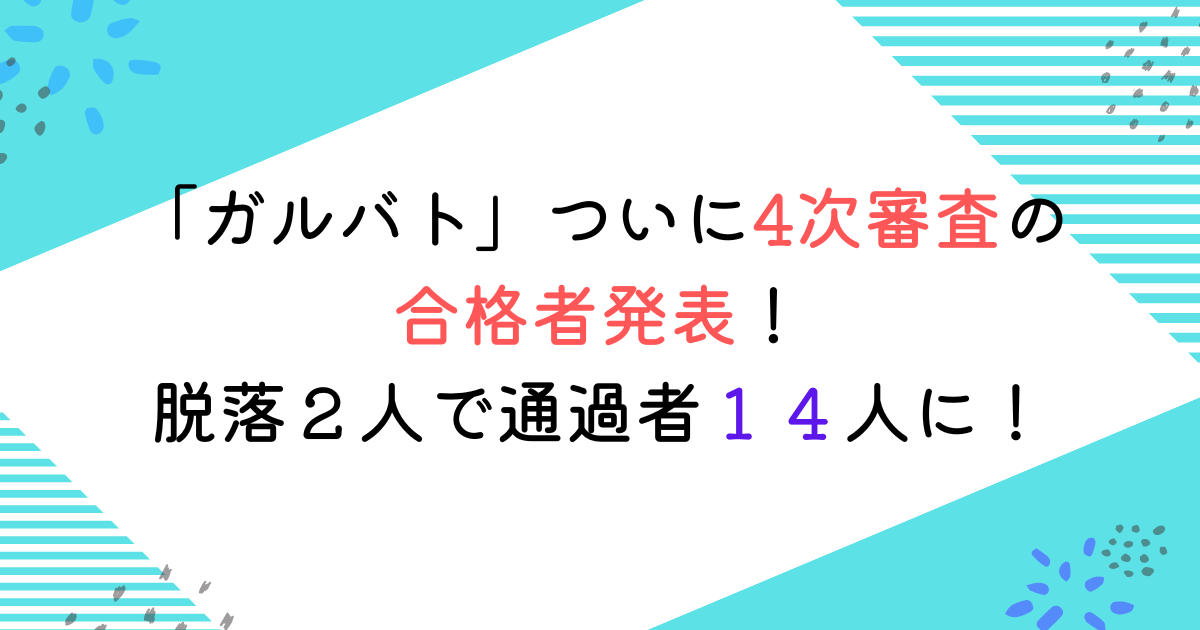 「ガルバト」ついに4次審査の合格者発表!脱落2人で通過者14人に!
