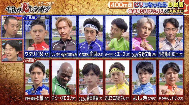 【鬼レンチャン男子400m走サバイバル】の出場者一覧