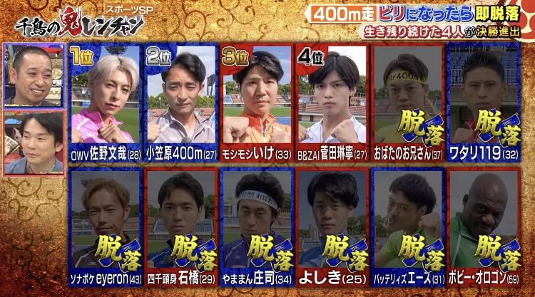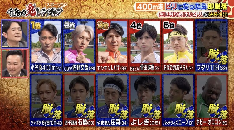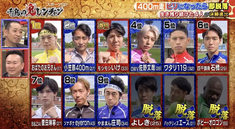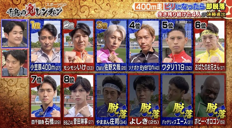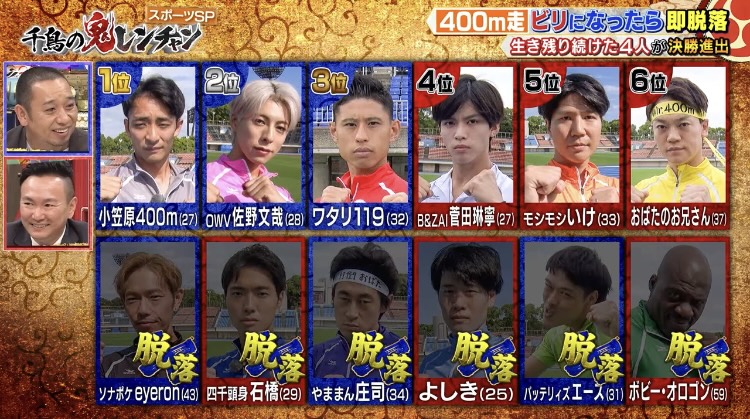 【鬼レンチャン男子400m走サバイバル】第7回の結果