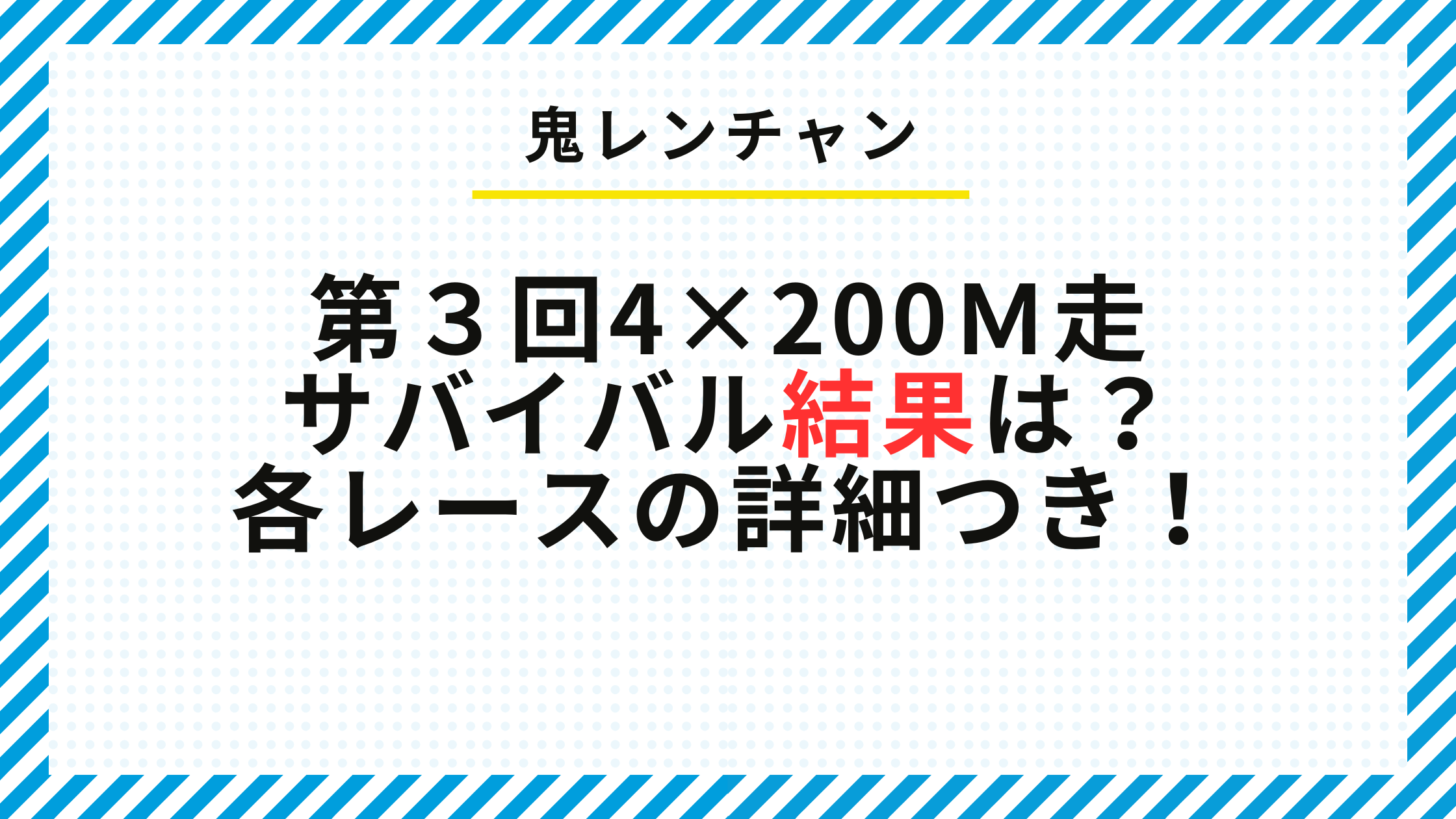 2025年の年末に放送された『千鳥の鬼レンチャン』の【第3回4×200mリレーサバイバルレンチャン】について、結果をネタバレです。