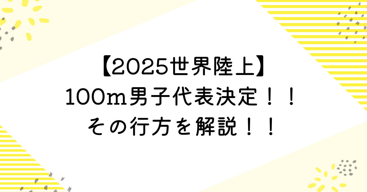 2025世界陸上の100m男子の選考の行方をまとめると、